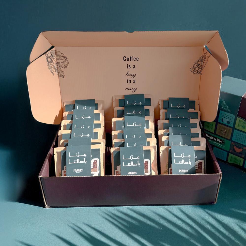 تميّز بتوزيعاتك الوطنية هالسنة مع الأهل والأصحاب، بكج يجمع بين أظرف القهوة المختصة بنكهات متنوعة في ظروف سريعة التحضير، مع لمسة تصميمية تعبّر عن روح الوطن.